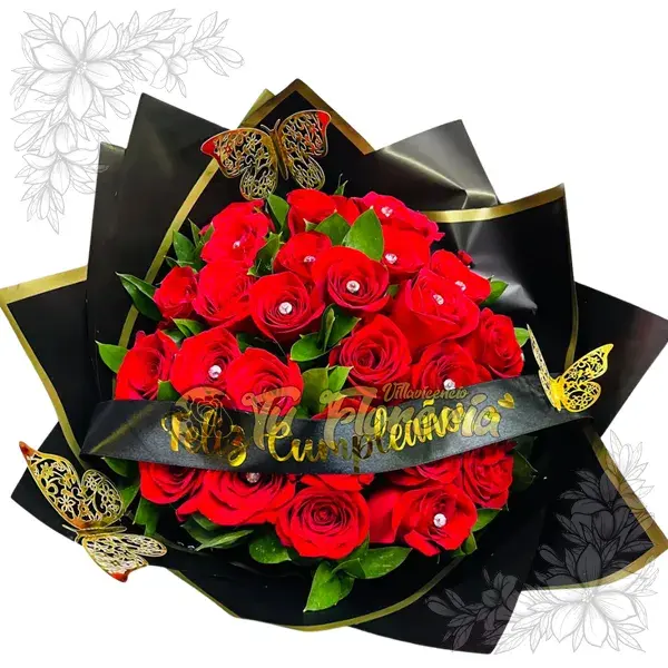 Bouquet de mano de 24 rosas rojas, punto diamante, Papel Coreano. Disponibilidad de color de las rosas.