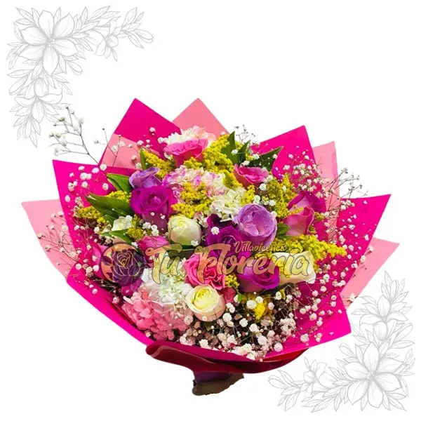 Bouquet de mano tropical en rosas y flores silvestre, Papel Coreano