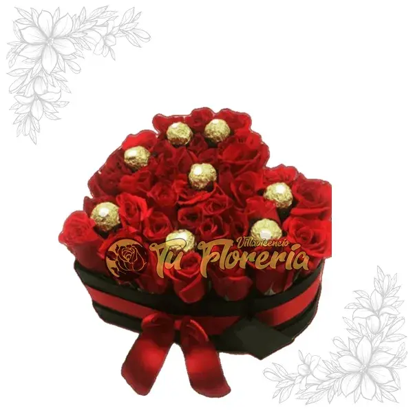 Caja corazón color según disponibilidad, en rosas, 8 Chocolates, color según disponibilidad.